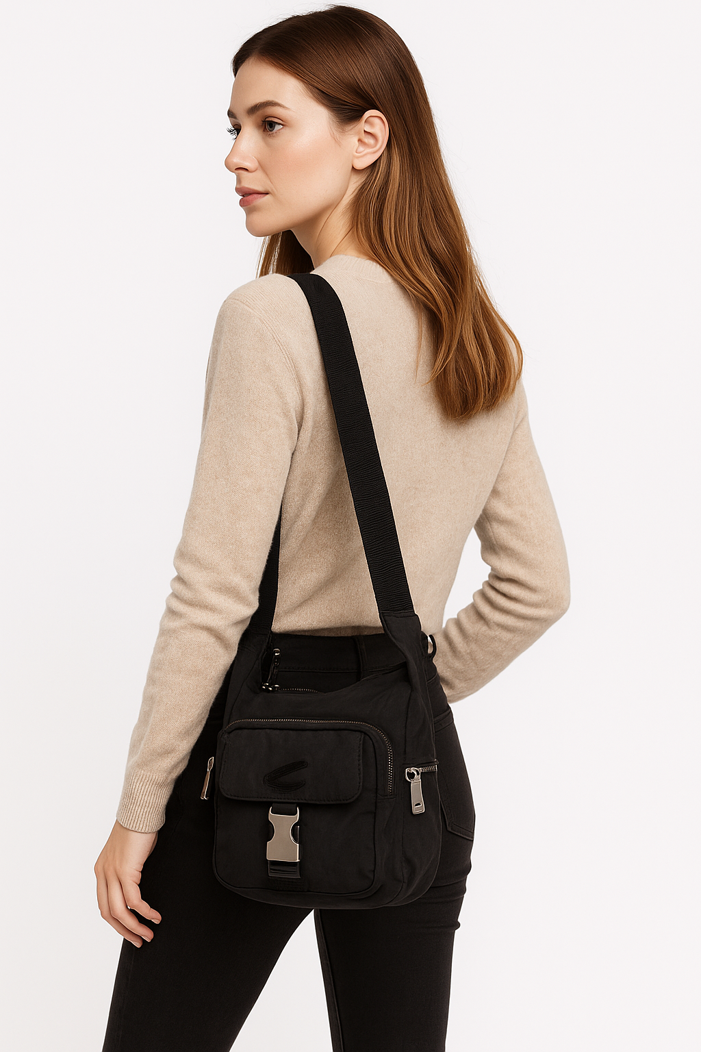 Model Camel Active B00-606-60 to nowoczesna torba na ramię wykonana z wytrzymałego, czarnego nylonu. Prosty design i przemyślane detale czynią ją świetnym wyborem zarówno dla kobiet, jak i mężczyzn. Doskonale sprawdzi się w pracy, na uczelni czy podczas miejskich wypadów.