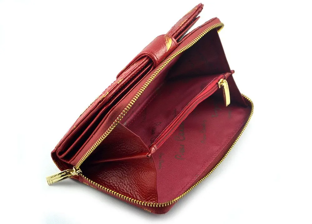Portfel Pierre Cardin Plant 116 został stworzony dla kobiet, które chcą połączyć elegancję, funkcjonalność i oryginalny styl. Model wyróżnia się nie tylko intensywnym czerwonym kolorem, ale także subtelnym wzorem złotych liści, który dodaje mu klasy i artystycznego charakteru.