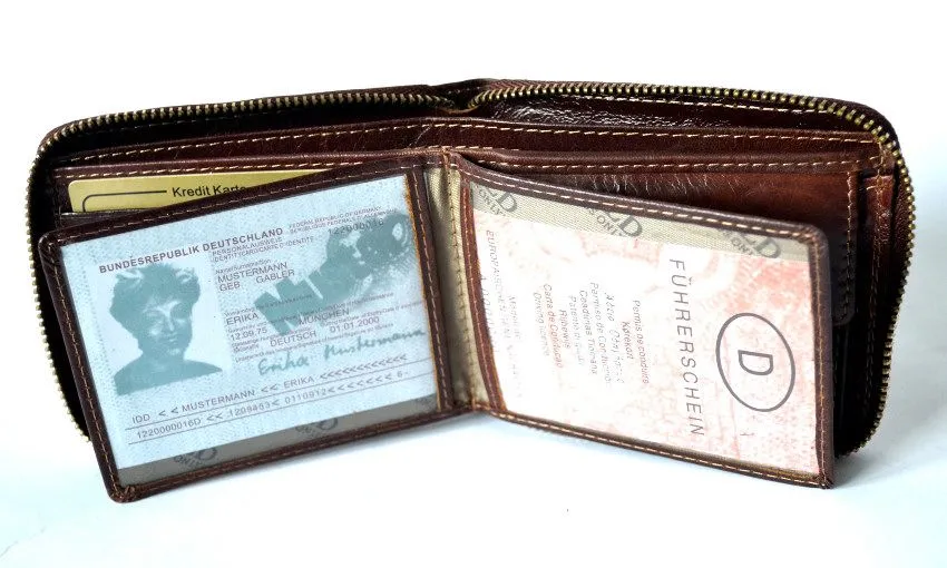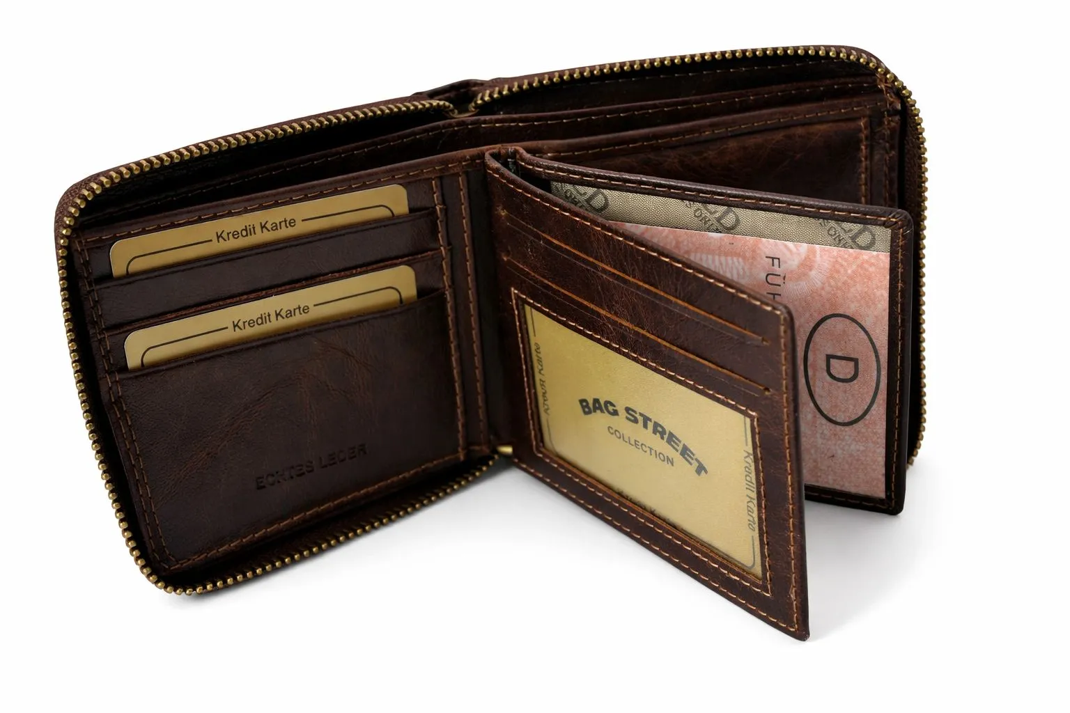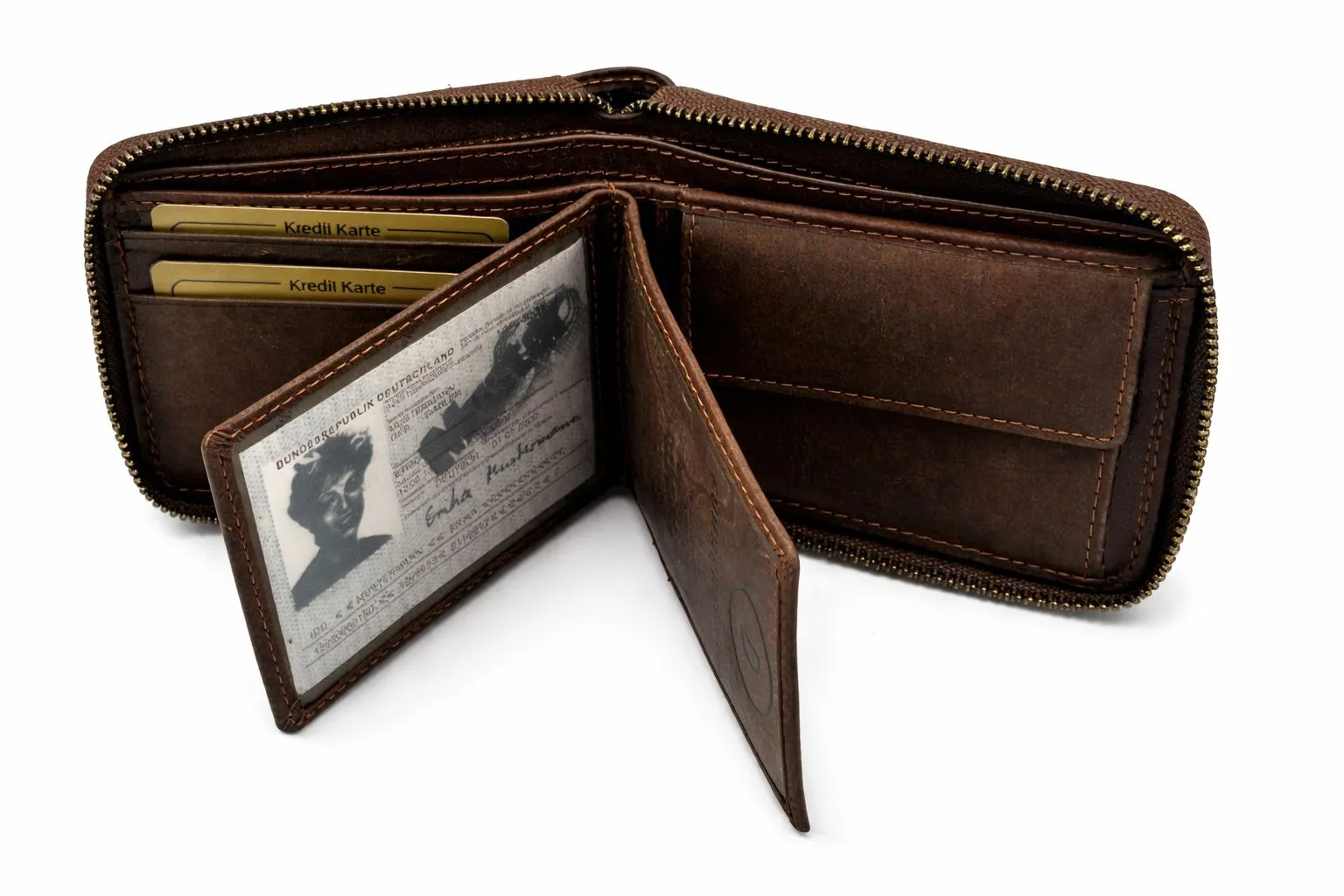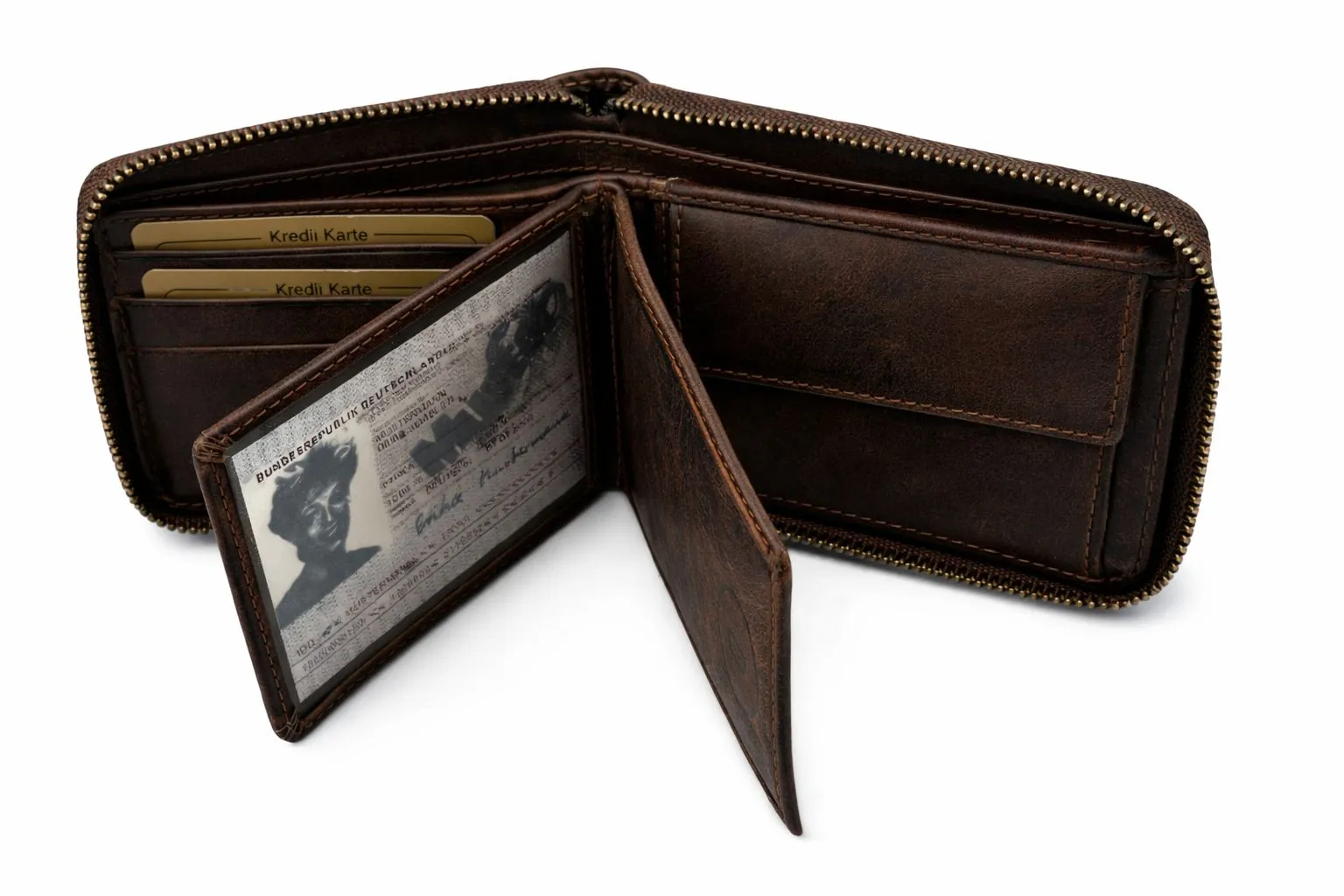 Portfel skórzany z charakterem. Zamek dobrze zabezpiecza zawartość, nic się nie wysuwa. Wnętrze dobrze rozplanowane.